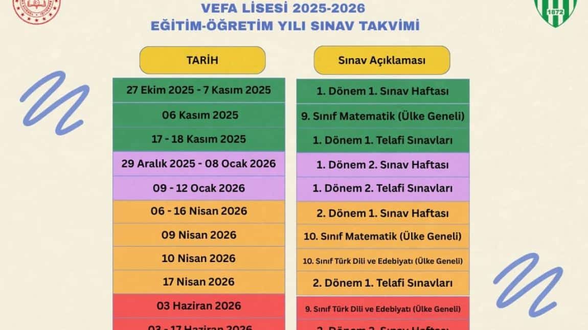 Vefa Lisesi 2025-2026 Yılı Sınav Takvimi